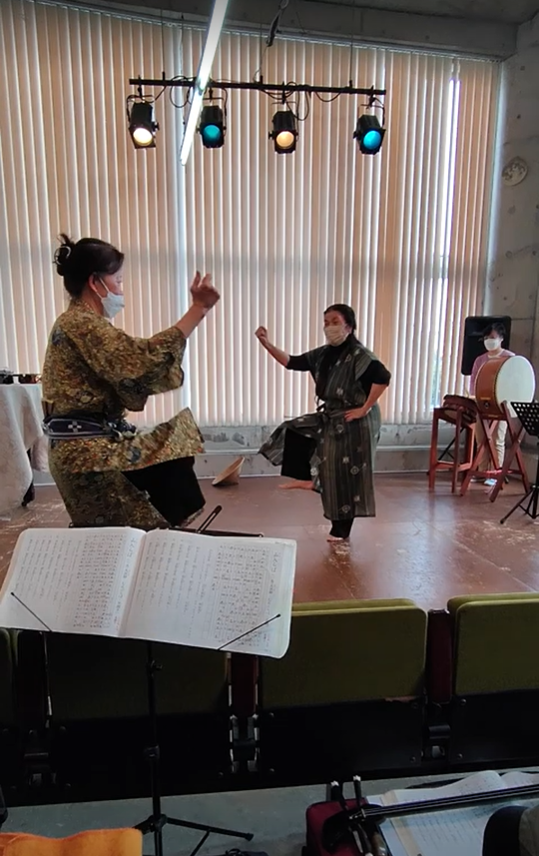 今回は、白保から川井民枝先生と山里恵子先生による踊りの地謡の練習がありました。