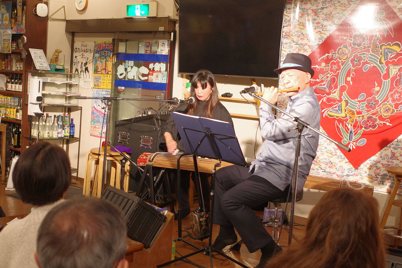 大工先生の笛伴奏で、苗子さんが優しい琴とともに「愛の子守唄」。