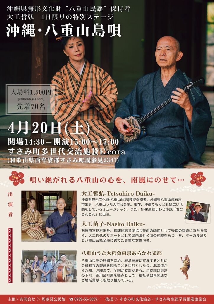 ■20日(土)午後 大工哲弘ライブのオープニングアクト出演(和歌山県すさみ町多世代交流施設 E’cora)