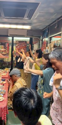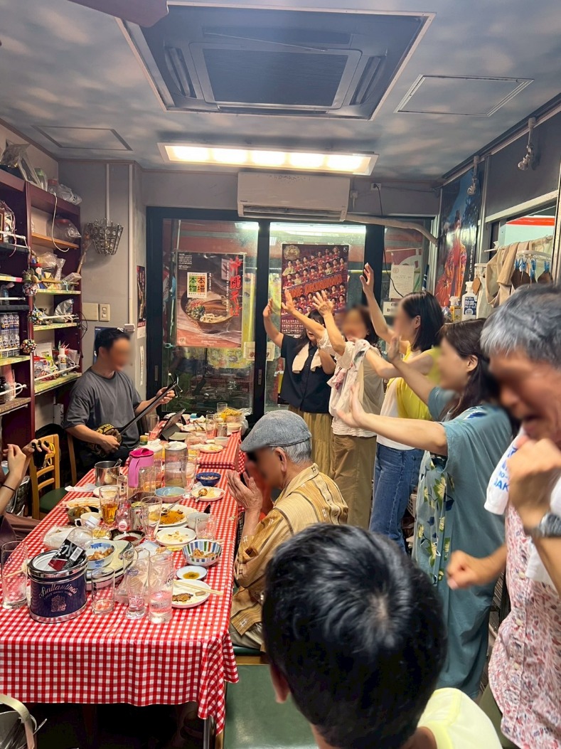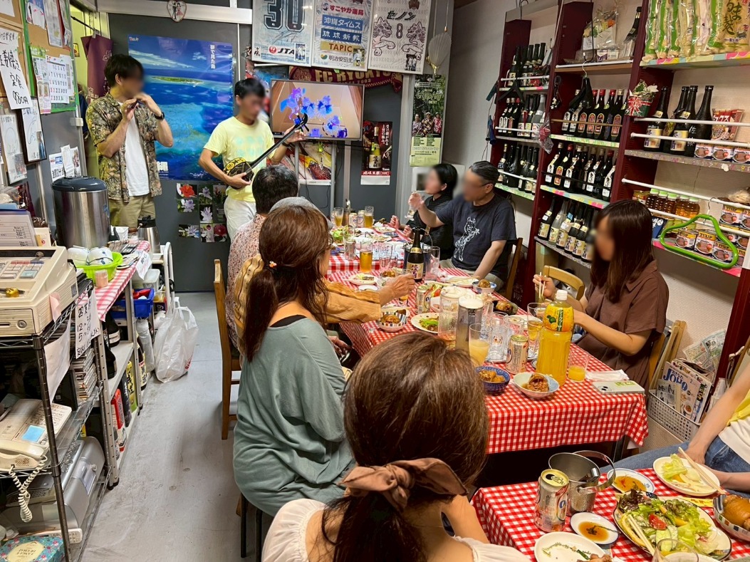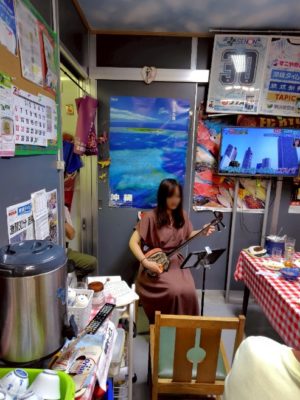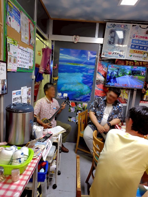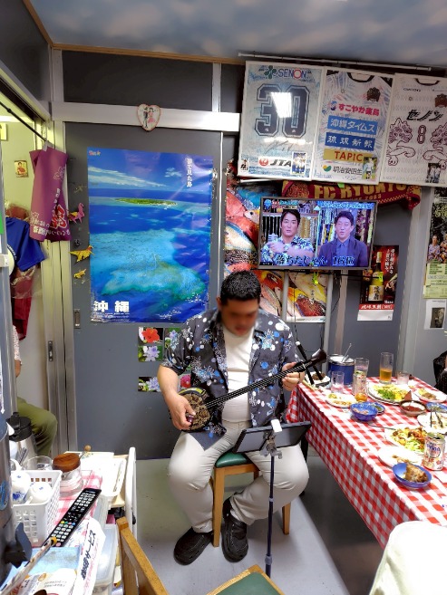 基本お店貸し切り、三線と三板、場合によっては●●●持参、食べ呑みながらガチで歌い弾き踊るスタイルなのです!