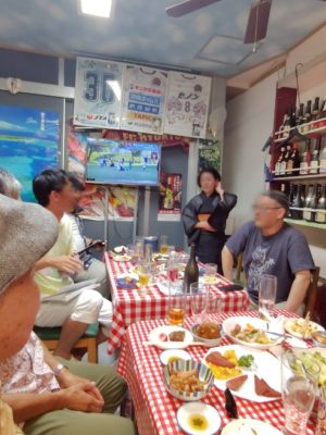 皆のリクエストに応えて『くいへー節』を独唱してくださった宮良ご出身のYNさん。