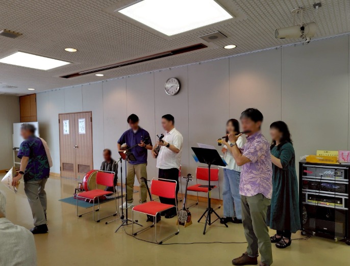会の参加者の中から歌三線や踊り、芸を披露される方もいて、その度に会場は拍手と指笛で盛り上がりました。