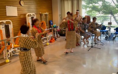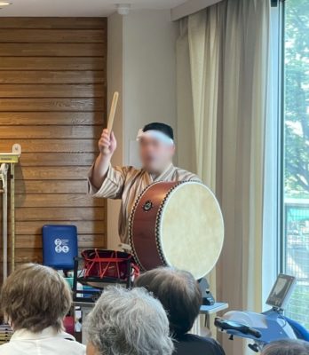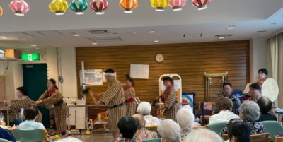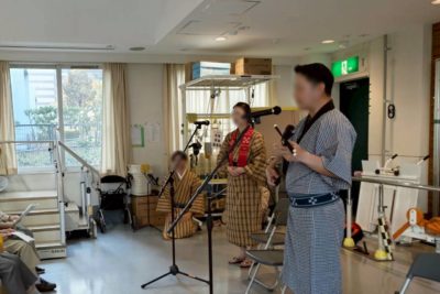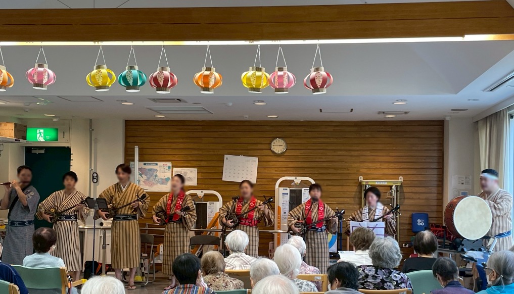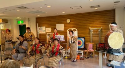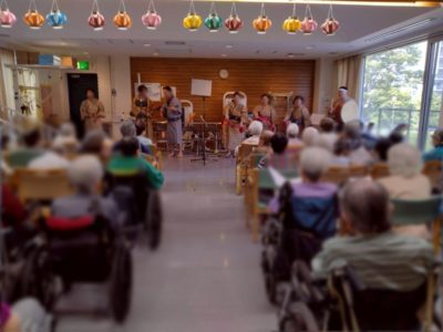 前回と同じく施設利用者の皆様の昼食後のお時間に八重山民謡中心の演目を楽しんでいただきました。